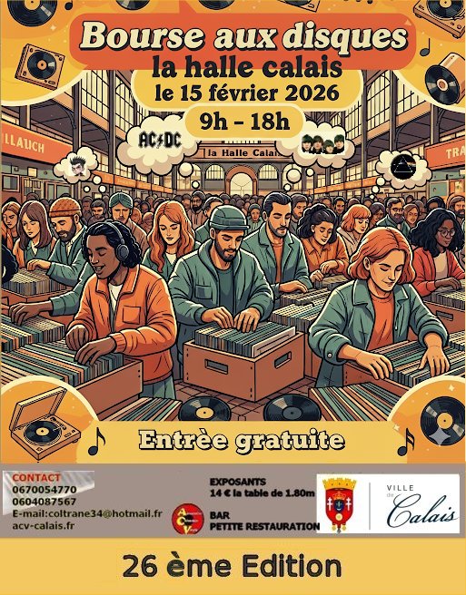 26ème Foire aux vinyles ACV Dimanche 15 Février 2026 - Entrée gratuite La Halle (Place d'Armes) - Calais |
