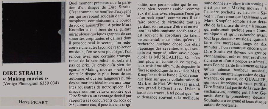 Juillet 1983 Mark Knopfler Terry Williams Alan Clark Clavier + Tommy Mandel Sax : Mel Collins percussions: Joop de Korte |
