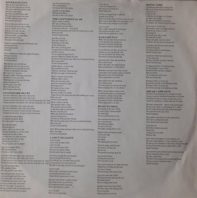 Loanshark blues 1987 Bought & sold 1975 Bad penny 1979 Cruise on out 1978 Crest of a wave 1971 I'm not surprised 1971 Unmilitary two step 1973 Alexis 1990 Edged in blues 1976 They don't make them like you anyone 1973 The devil made me do it 1982 Too much alcohol 1974 live I could have bad religion 1972 live Shin kicker 1980 live |