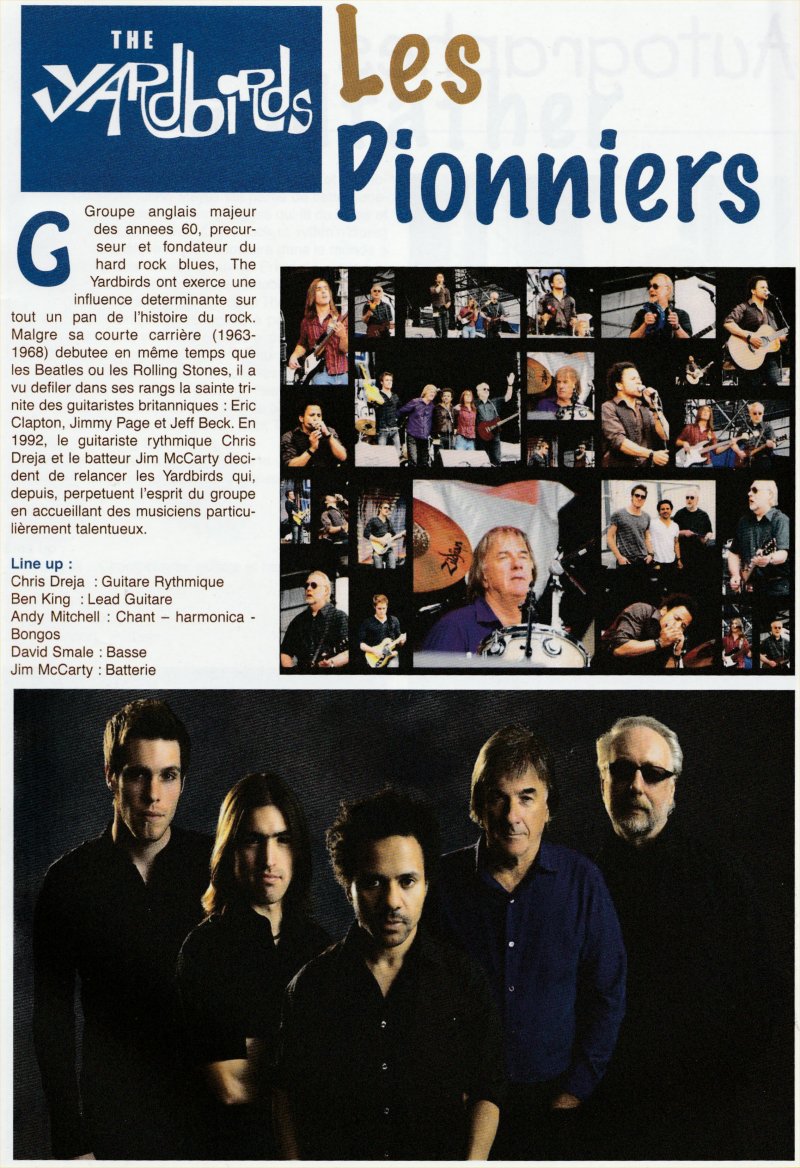 Article sur Yardbirds, livret Pub du concert à Leffrinckoucke du 8 Octobre 2010 |