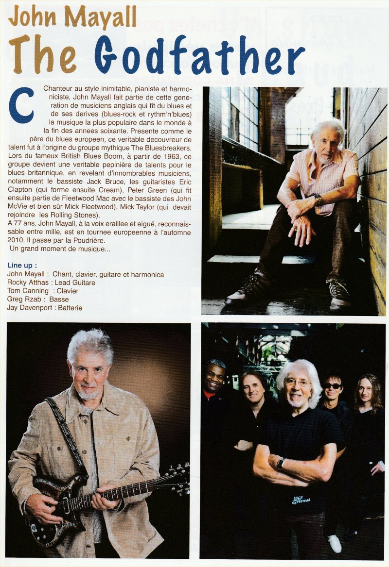Article sur John Mayall, livret Pub du concert à Leffrinckoucke du 8 Octobre 2010 |