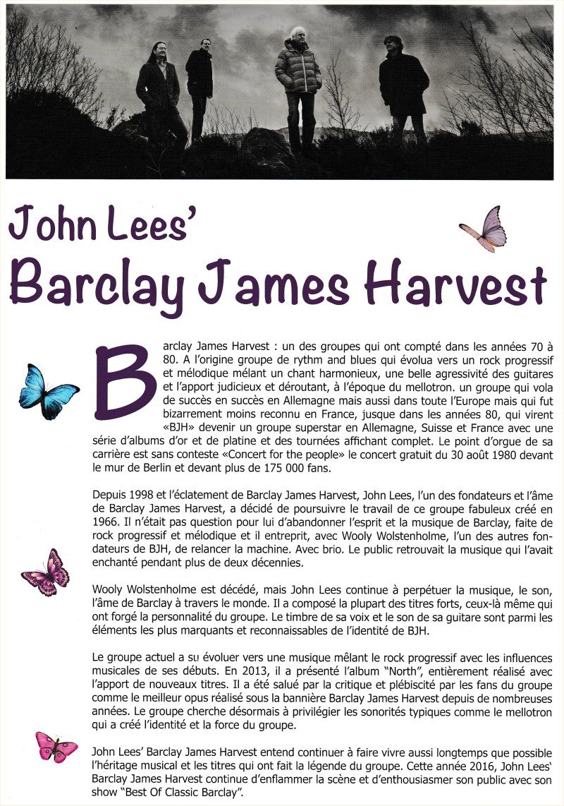 Article sur Barclay James Harvest, livret Pub du concert à Leffrinckoucke du 4 Novembre 2016 - 1/2 |