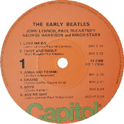 A1 Love Me Do 2:19 A2 Twist And Shout 2:32 A3 Anna 2:56 A4 Chains 2:21 A5 Boys 2:24 A6 Ask Me Why 2:24 B1 Please Please Me 2:00 B2 P. S. I Love You 2:02 B3 Baby It's You 2:36 B4 A Taste Of Honey 2:02 B5 Do You Want To Know A Secret 1:55 |
