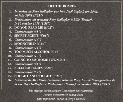 CD Off the boards de 50mn - Concert de Lille 10 Octobre 1978 |
