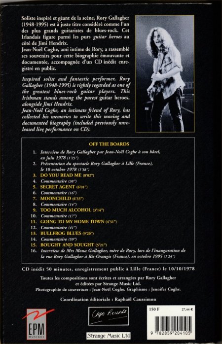 Livre de 210 pages - Auteur : Jean-Noel Coghe - Editions EPM et le Castor astral Avec un CD Off the boards de 50mn Concert de Lille 10/10/78 (vendu avec livre) EPM Sortie en 2000 - CD Capo 98 49 92 |