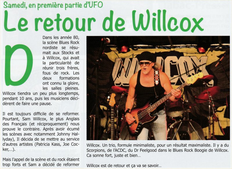 Article sur Willcox, livret Pub du concert à Leffrinckoucke du 5 Novembre 2016 |