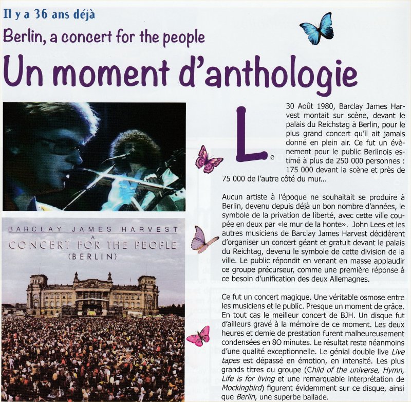 Article sur Barclay James Harvest, livret Pub du concert à Leffrinckoucke du 4 Novembre 2016 - 1/2 |