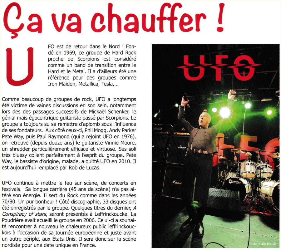 Article de UFO livret Pub du concert à Leffrinckoucke du 5 Novembre 2016 |
